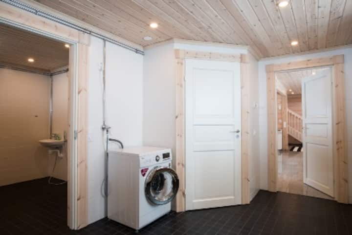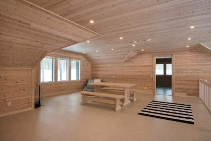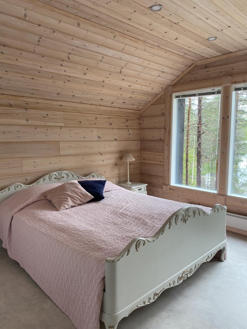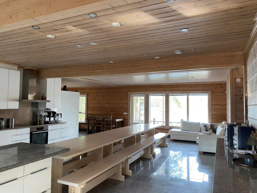 - Cozy sauna lounge with a fireplace – offers extra sleeping space for 3–4 guests in summer
